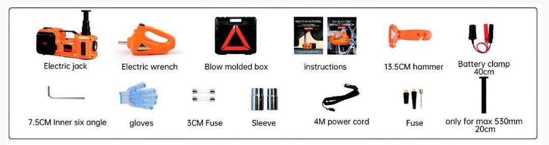 - Multi-functional: Jack + Air Pump + Electric Wrench